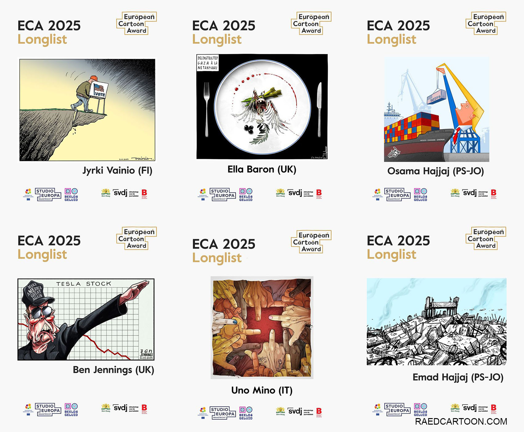 The ECA will announce the shortlist prior to the annual ECA Cartoons Day that will be held December 12, 2025 in The Hague, Netherlands.