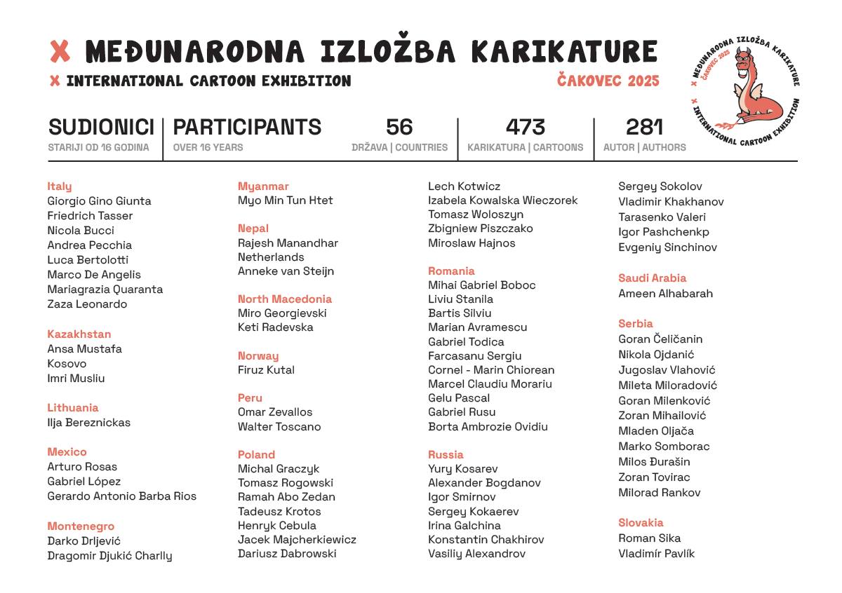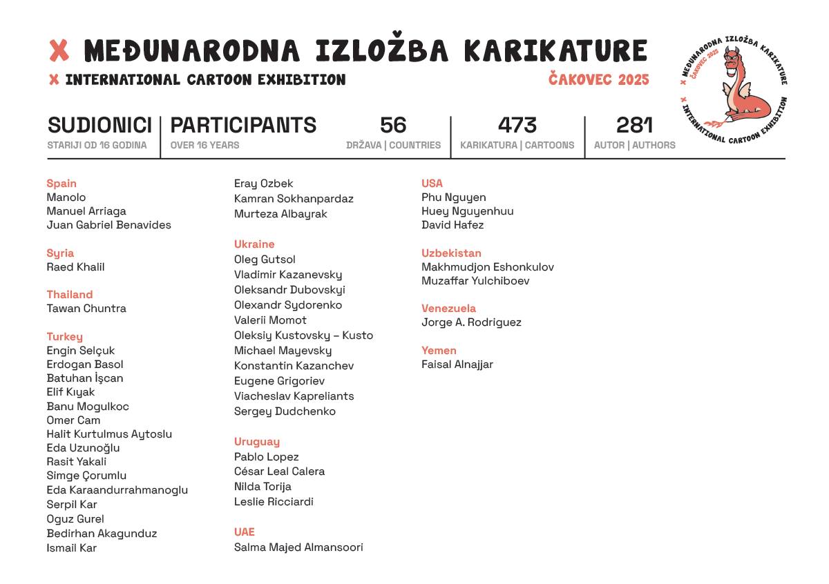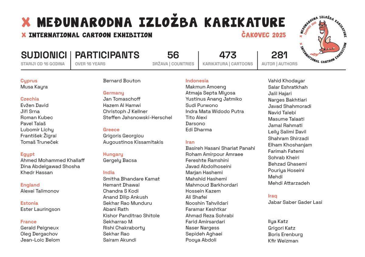 PARTICIPANTS OF 10TH INTERNATIONAL CARTOON EXHIBITION ČAKOVEC, Croatia2025