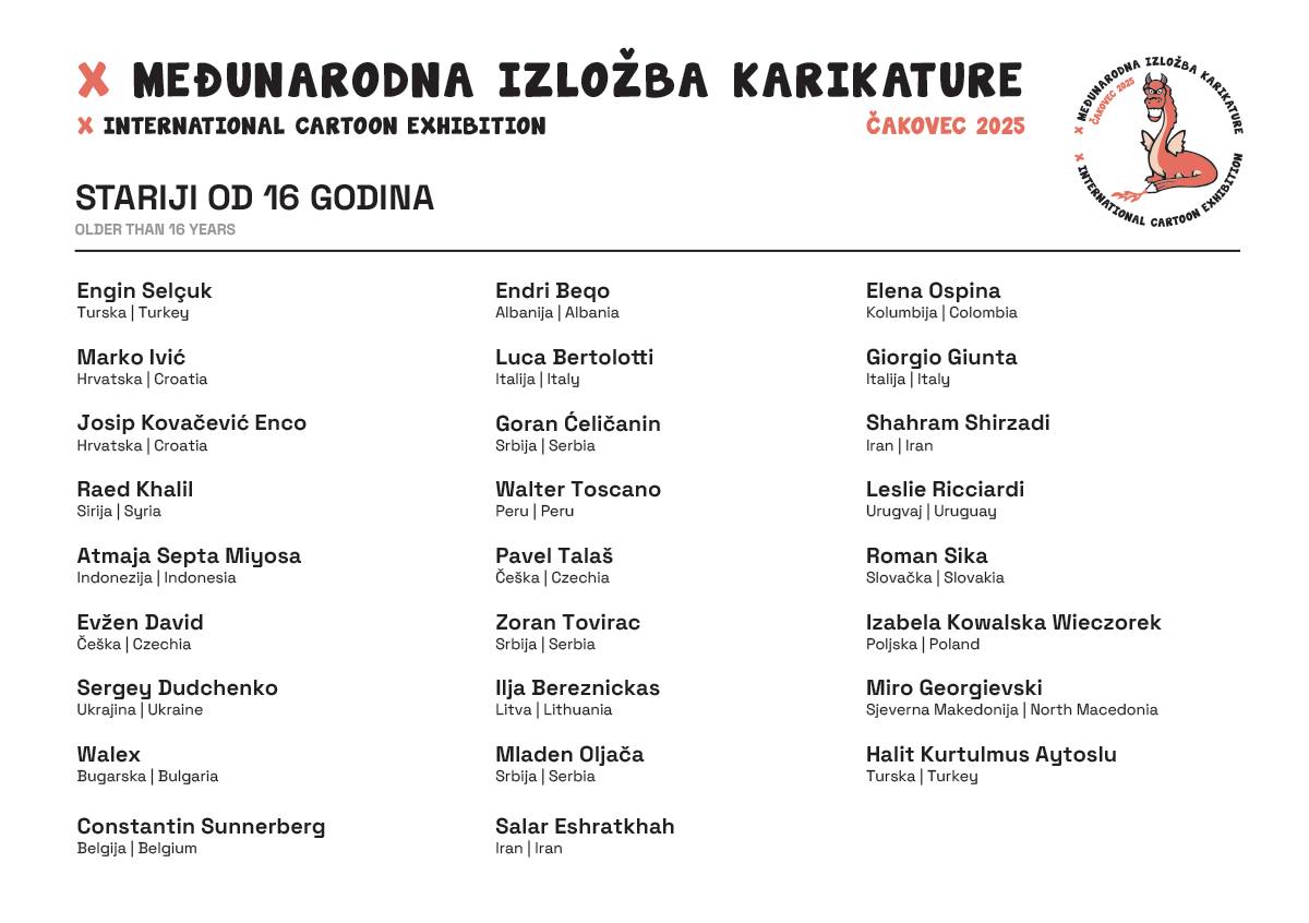 FINALISTS OF 10TH INTERNATIONAL CARTOON EXHIBITION ČAKOVEC, Croatia2025