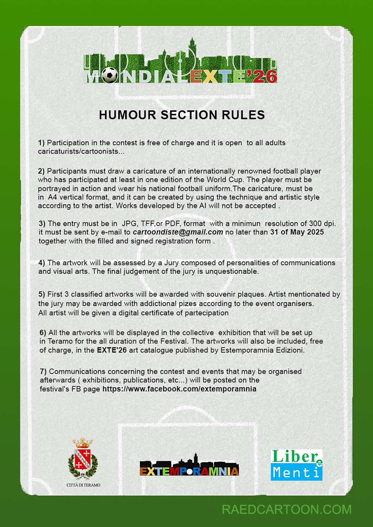 cartoondiste@gmail.com في موعد أقصاه الأحد 31 مايو/أيار 2026، مع استمارة التسجيل المعبأة والموقعة.